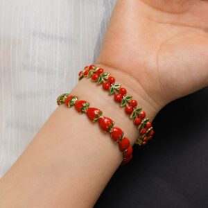 Sweet Strawberry Enamel Gold-Plated Open Cuff Bracelet