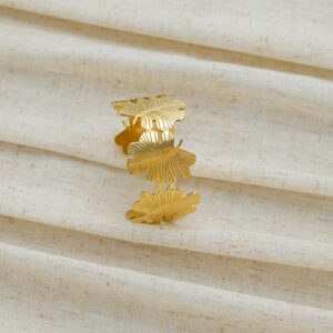 Nature – Inspired Gold – Tone Leaf – Shaped Open Cuff Bracelet