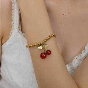 Red Large Cherry Pendant Bracelet with Fruit Elements