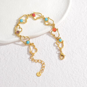 Multi-element Colored Turquoise Bracelet, with Hearts