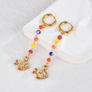 Multi-element Beaded Small Pendant Earrings, Fish Design