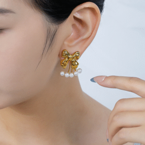 Cute and stylish bowknot pearl stud earrings