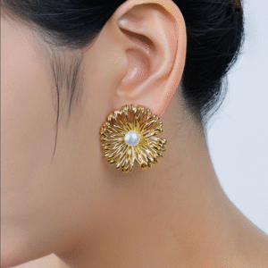 European Metal Flower Pearl Stainless Steel Stud Earrings