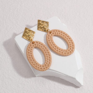 Exaggerated Hollow Woven Texture Earrings, Oval Shape