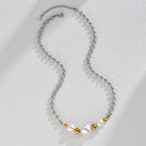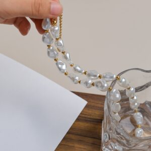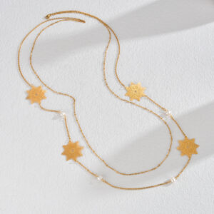 Double-Layer Long Octagonal Pearl Necklace, Gold-colored