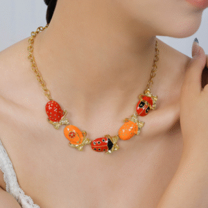 Insect Element: Five-Ladybug Stainless Steel Oil-Drip Necklace
