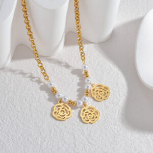 Multi-Element Small Pendant Pearl Necklace, Flower Design