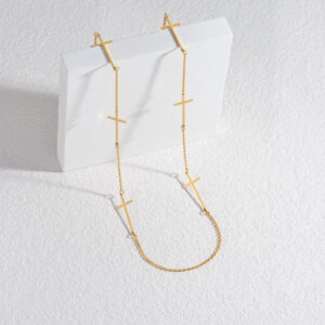 Double-Layer Layered Cross Pearl Necklace, Gold-colored