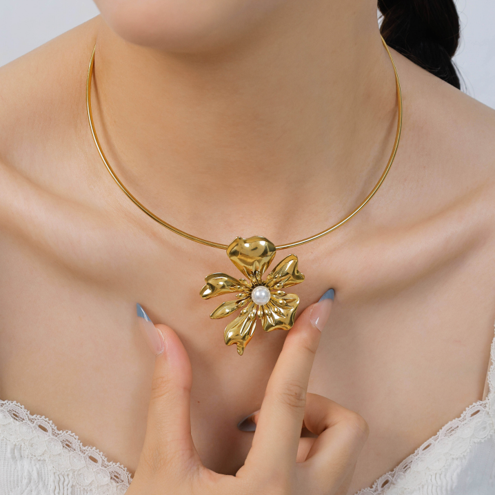 American exaggerated large flower pearl choker