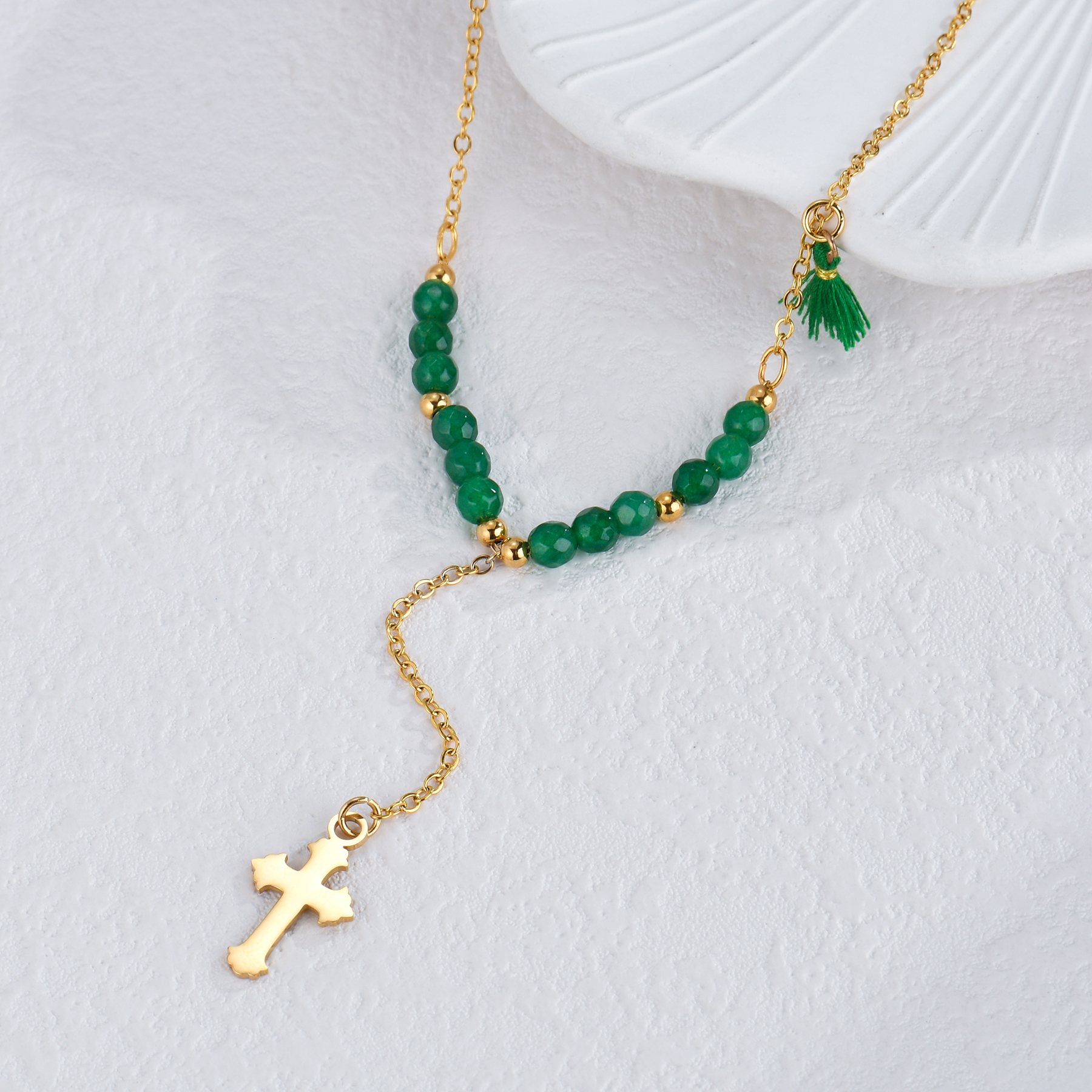 Beaded Cross Tassel NecklaceBeaded Cross Tassel Necklace