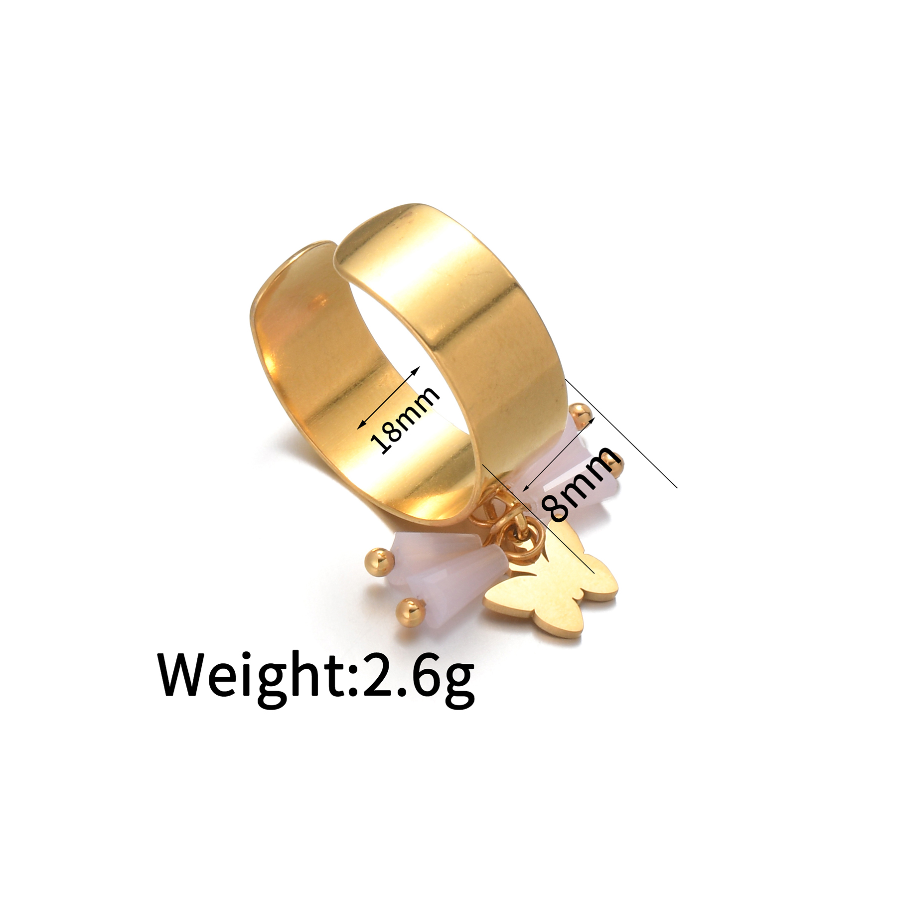 Beaded Small Pendant Ring, Pink + Butterfly Design