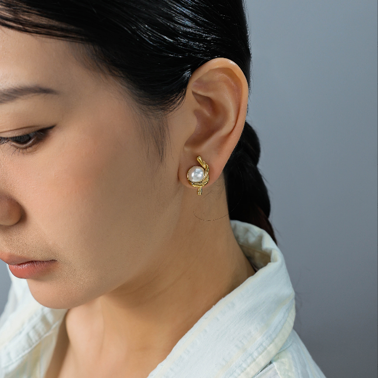 Summer New Shell Irregular Ocean Beach Style Stainless Steel Pearl Earrings