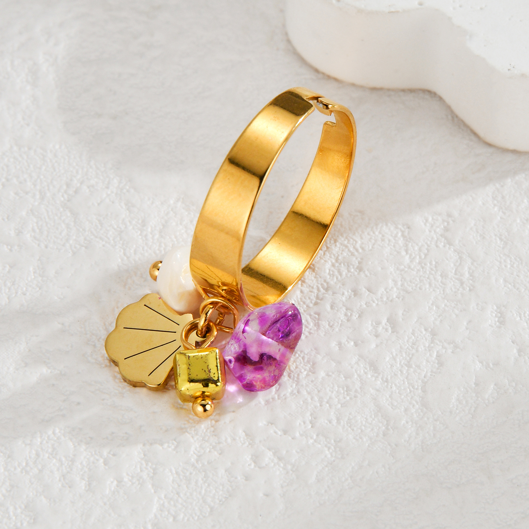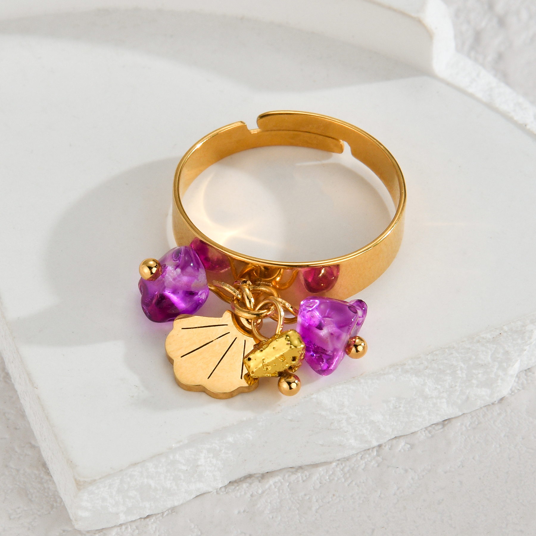 Crushed Stone and Shell Small Pendant Ring, Purple + White