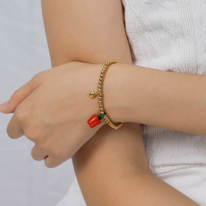Cute Red Chili Pepper Pendant Bracelet with Fruit Elements