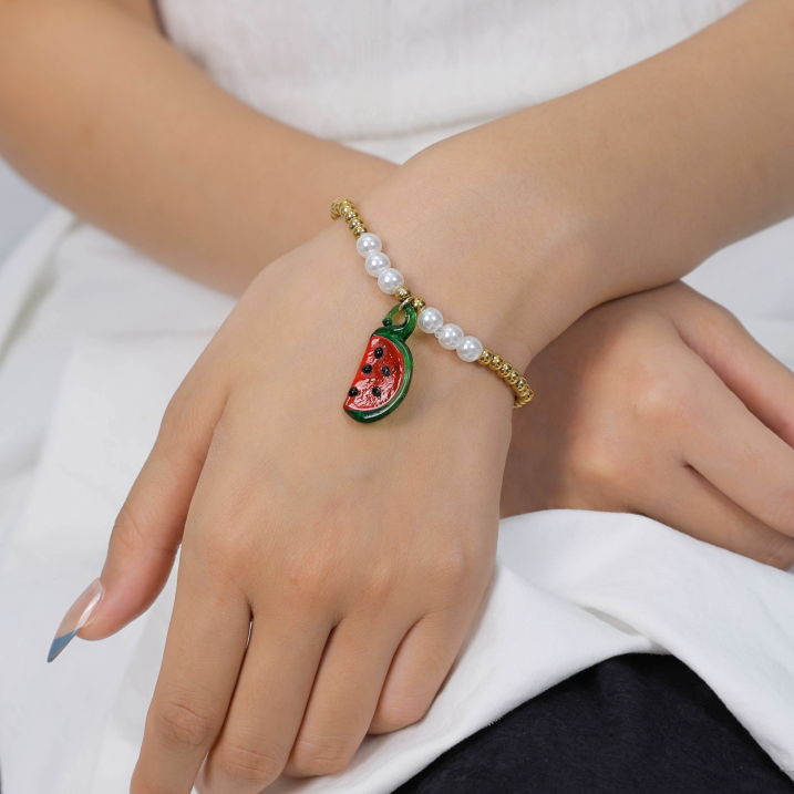 Cute Watermelon Pendant Bracelet with Fruit ElementsCute Watermelon Pendant Bracelet with Fruit Elements