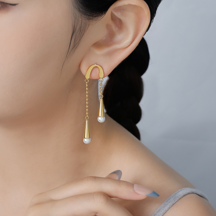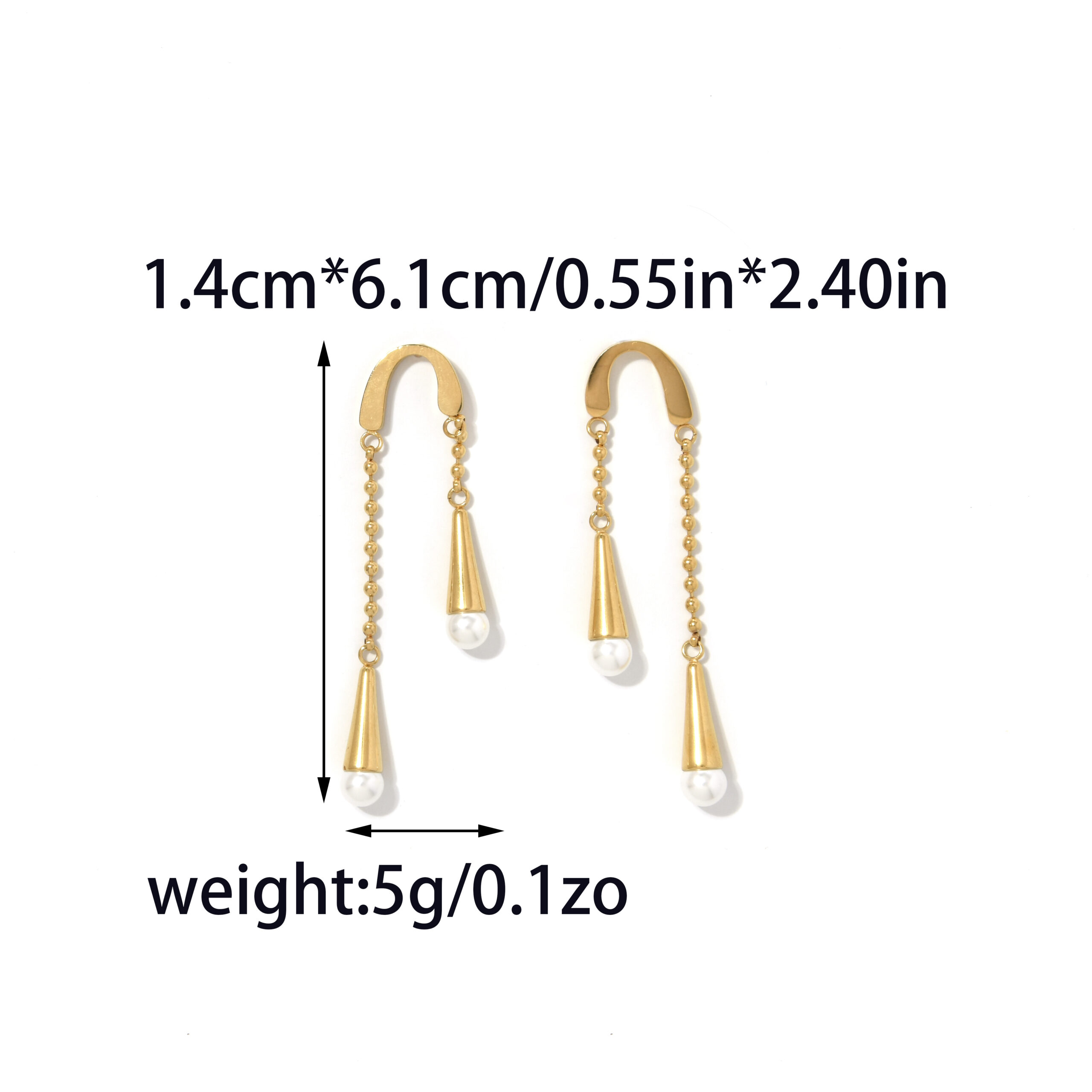 Double Layer Chain Pearl Stainless Steel EarringsDouble Layer Chain Pearl Stainless Steel Earrings