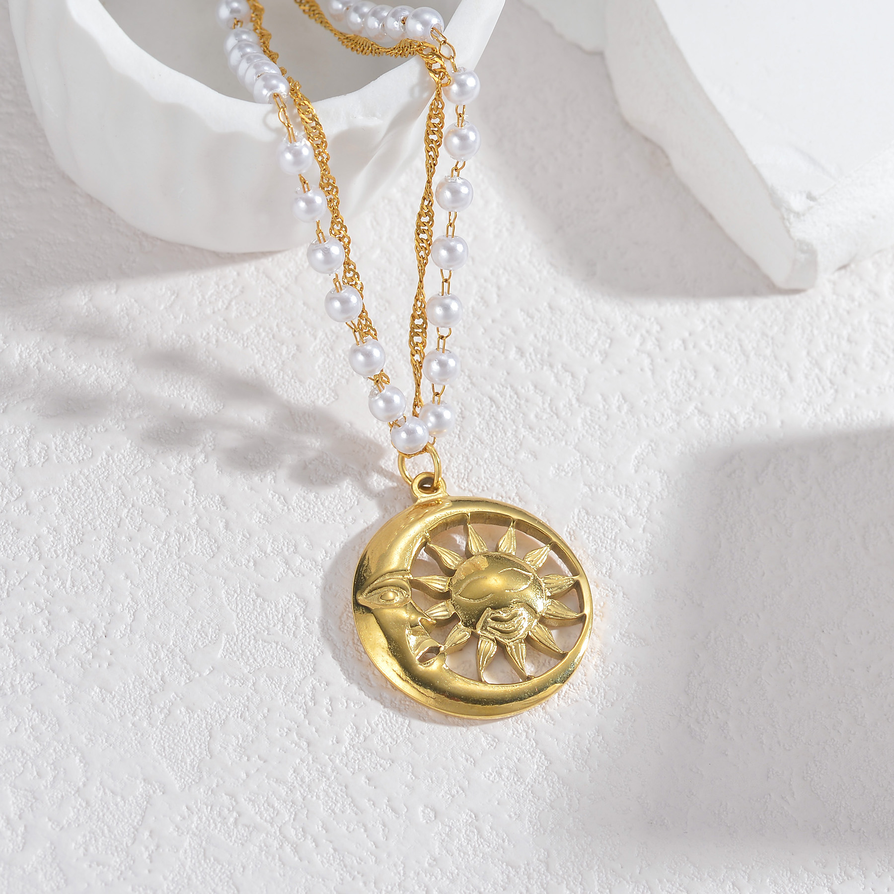 Double-Layer Layered Pearl Necklace, Sun Design Original price was: $3.00.$2.50Current price is: $2.50.
