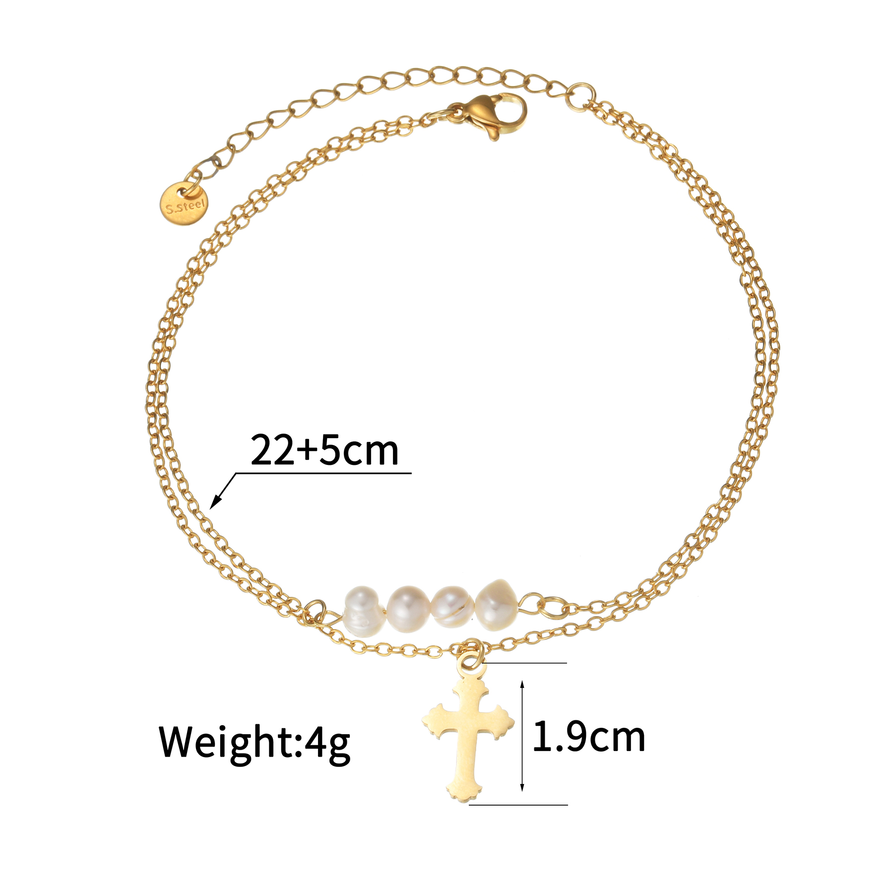 Double-layer stacked cross pearl anklet