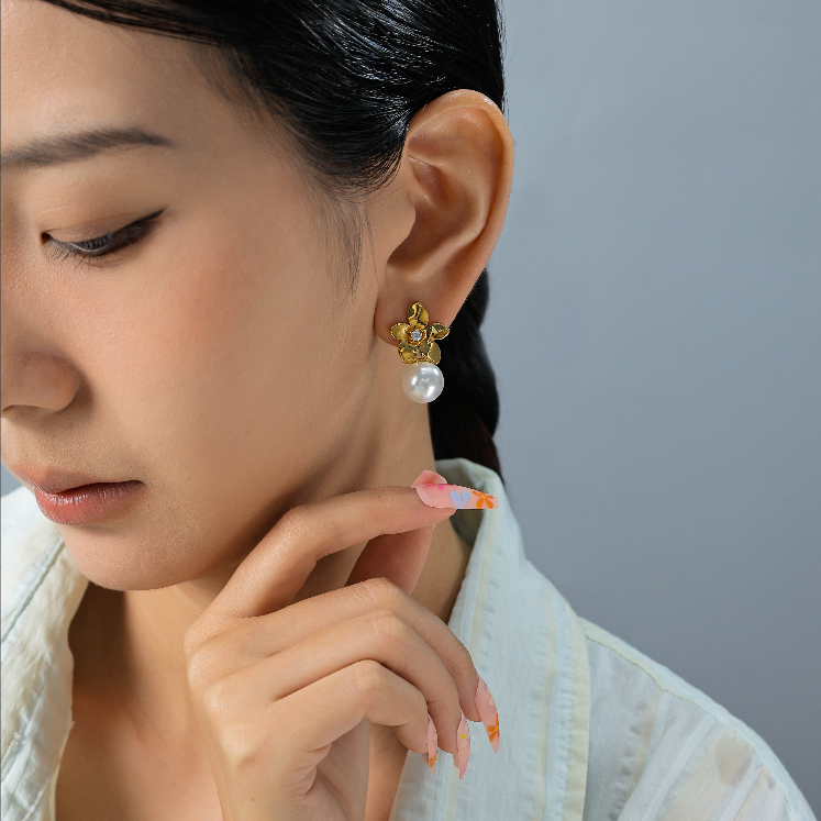European American Metal Flowers Pearl Pendant Earrings Classic Stud Earrings for Girls Original price was: $3.00.$2.80Current price is: $2.80.