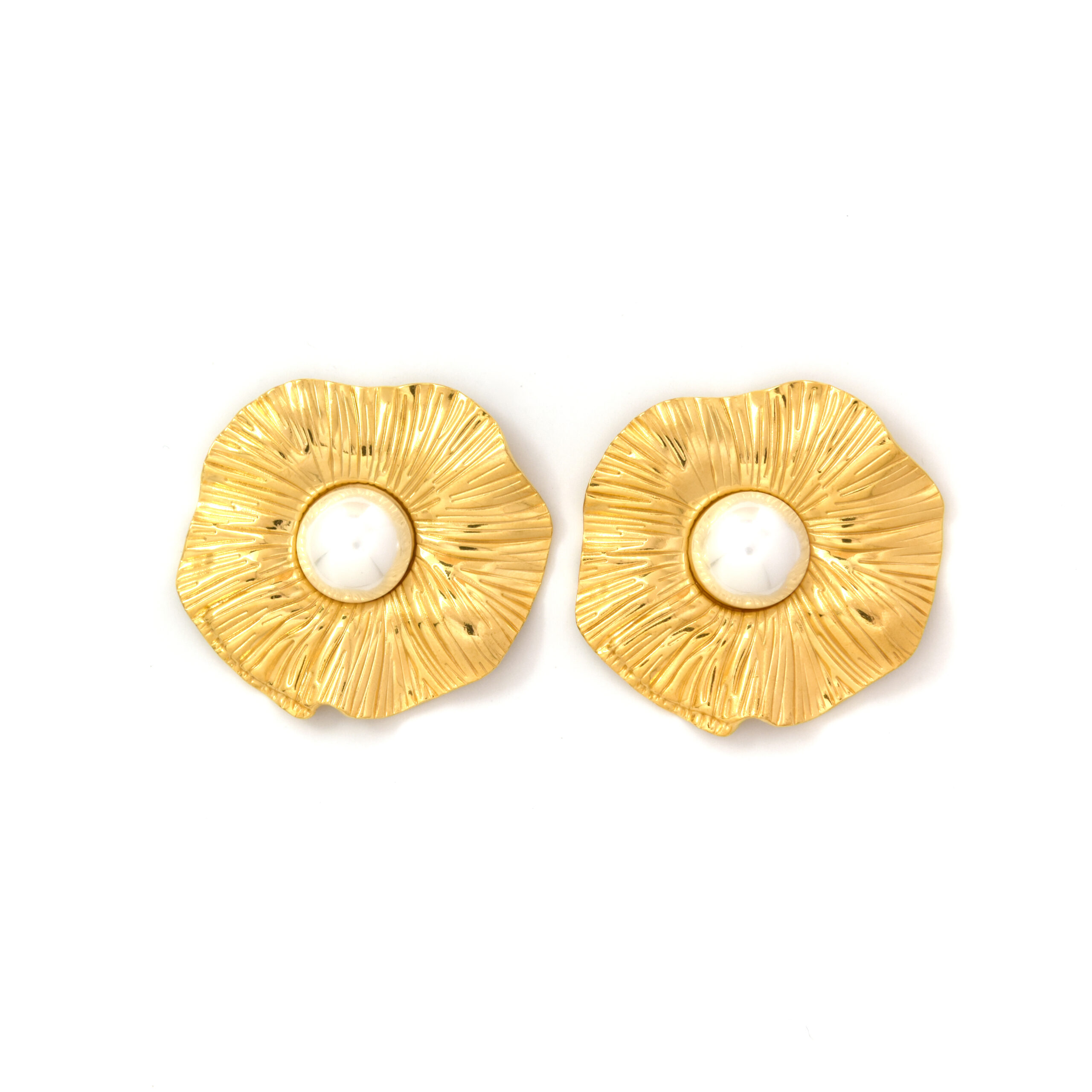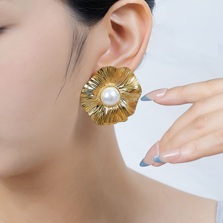European and American vintage stainless steel flower pearl-inlaid stud earrings Original price was: $4.00.$3.50Current price is: $3.50.