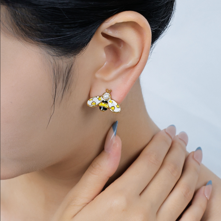 Exquisite and designer-style small bee pearl stud earringsExquisite and designer-style small bee pearl stud earrings