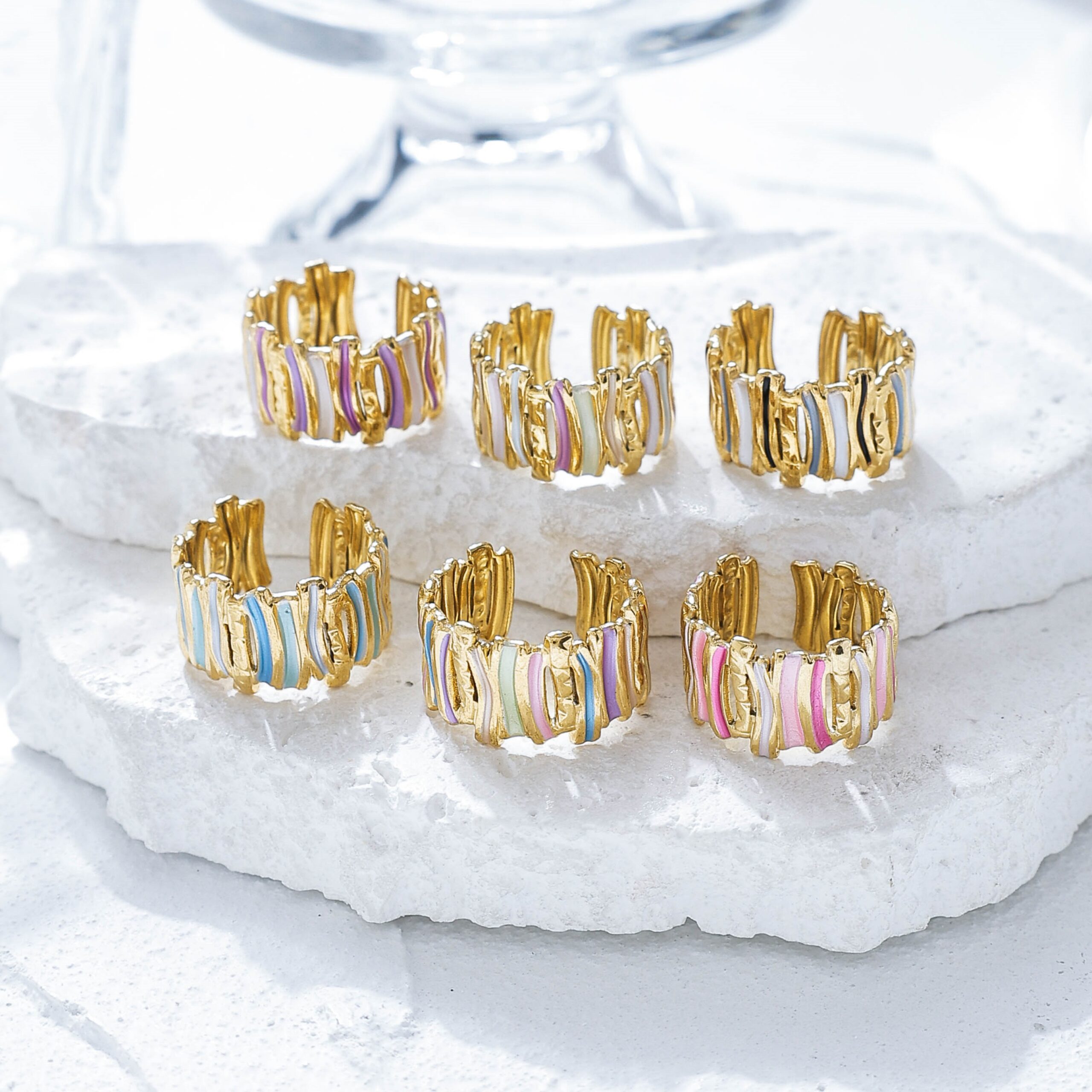 Fashion - Forward Gold - Tone Colorful Striped Open RingsFashion – Forward Gold – Tone Colorful Striped Open Rings