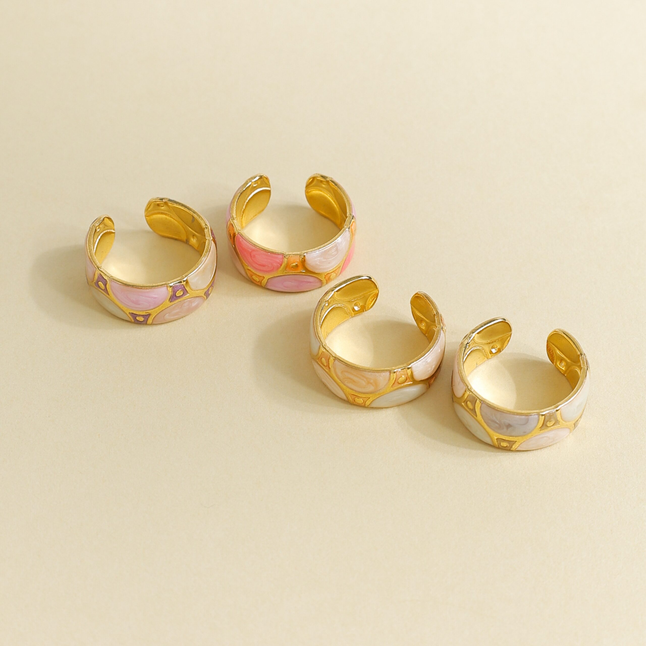 Fashion – Forward Gold – Tone Open Rings with Colorful Round Accents