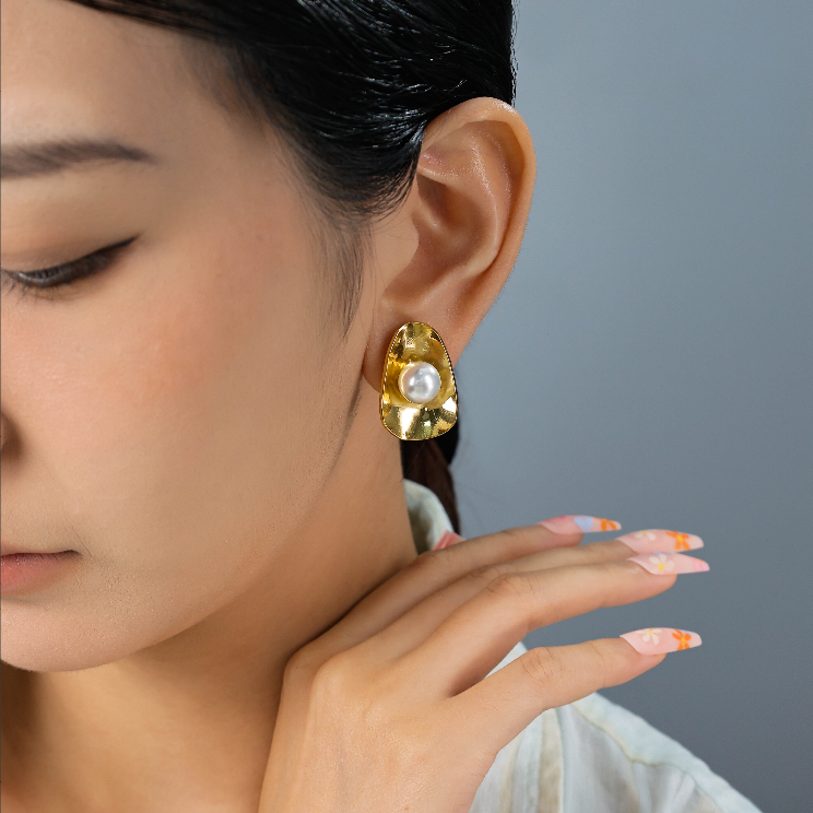 Fashion Stainless Steel Shell Pearl Earring Gold Plated Irregular Geometric Pearl Stud Earrings for Women Original price was: $3.50.$3.00Current price is: $3.00.