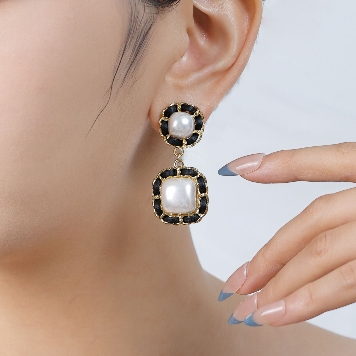 French fashion wrapped chain pearl pendant earrings Original price was: $4.00.$3.80Current price is: $3.80.