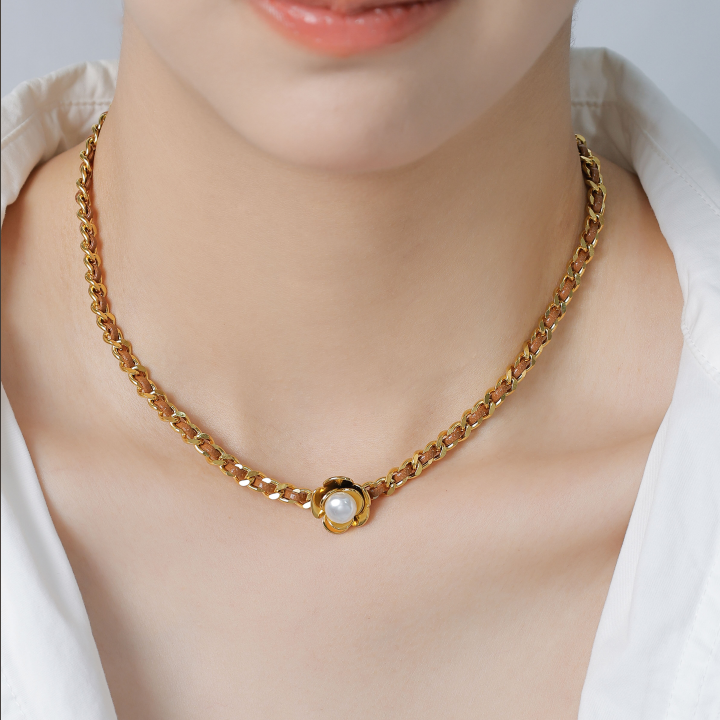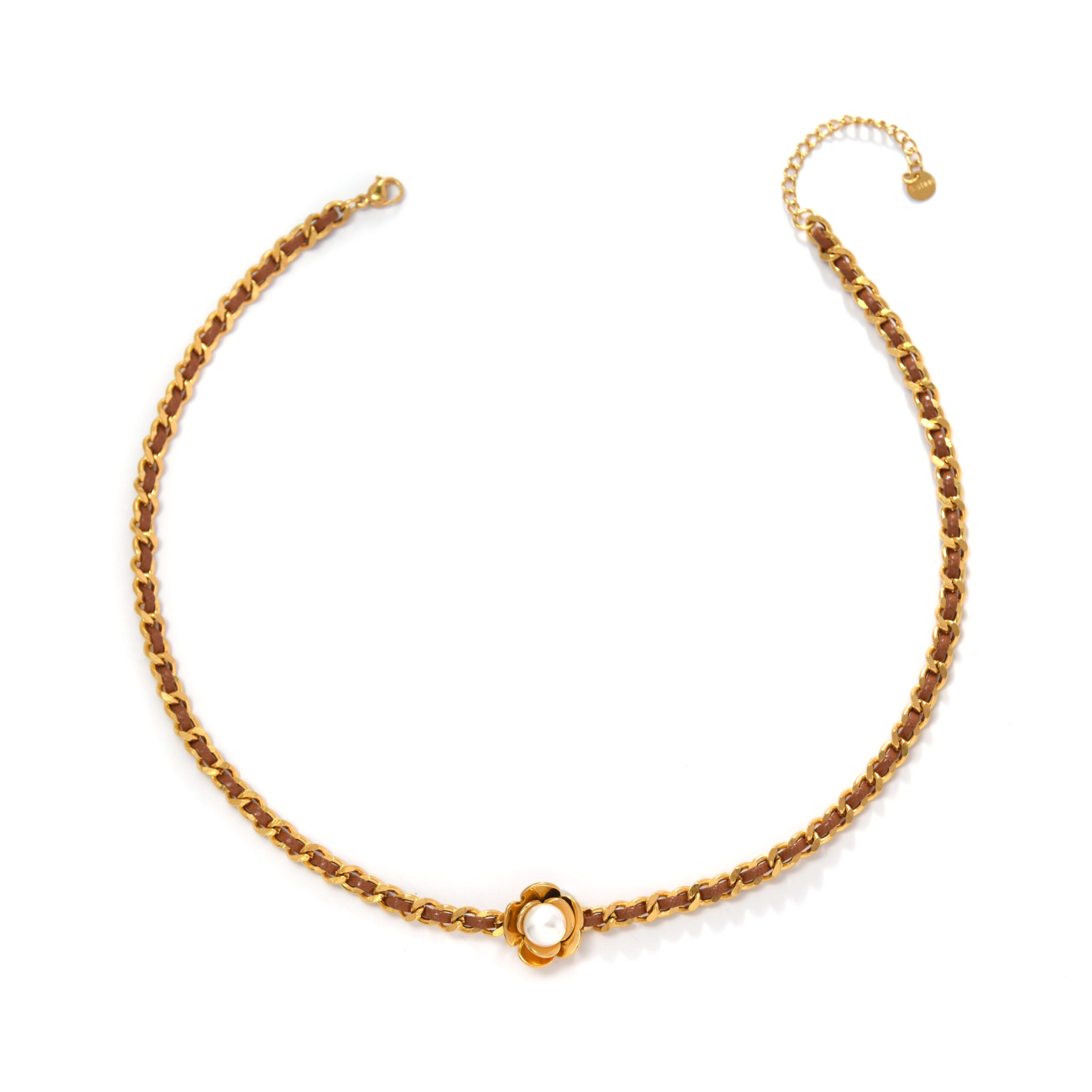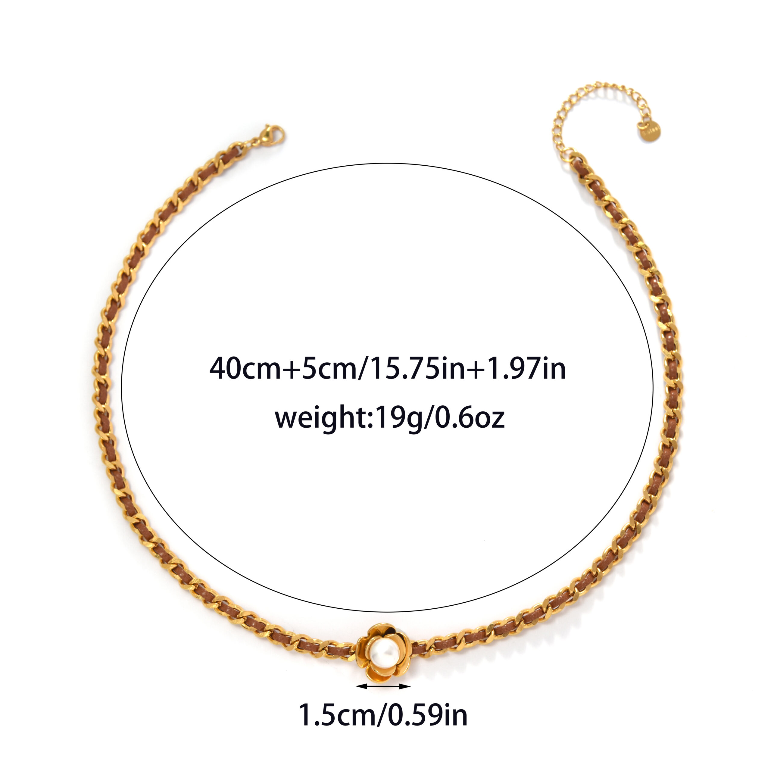 French romantic black woven chain pearl flower necklace Original price was: $5.00.$4.00Current price is: $4.00.