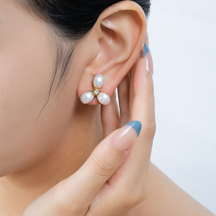 French-style Soft Pearl Diamond-Embedded Stainless Steel Earrings Original price was: $3.50.$3.00Current price is: $3.00.