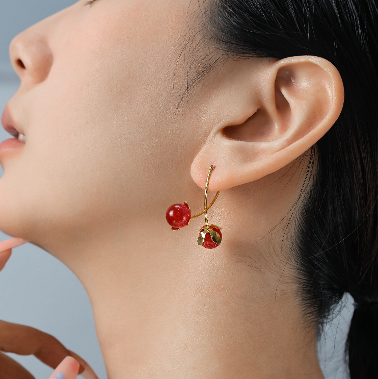 Fruit Element Designed Fresh High-End Cherry Stainless Steel Crystal EarringsFruit Element Designed Fresh High-End Cherry Stainless Steel Crystal Earrings