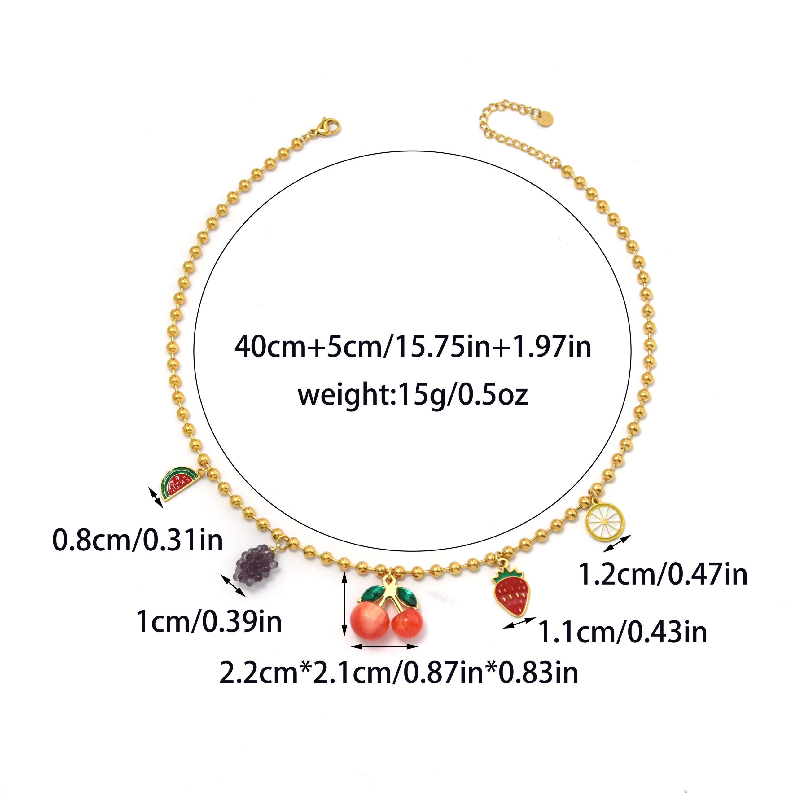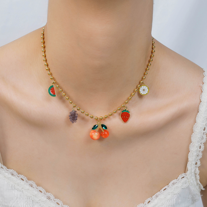Fruit Party: Cute and Fresh Stainless Steel Necklace with Cherry and Strawberry Fruit PendantsFruit Party: Cute and Fresh Stainless Steel Necklace with Cherry and Strawberry Fruit Pendants