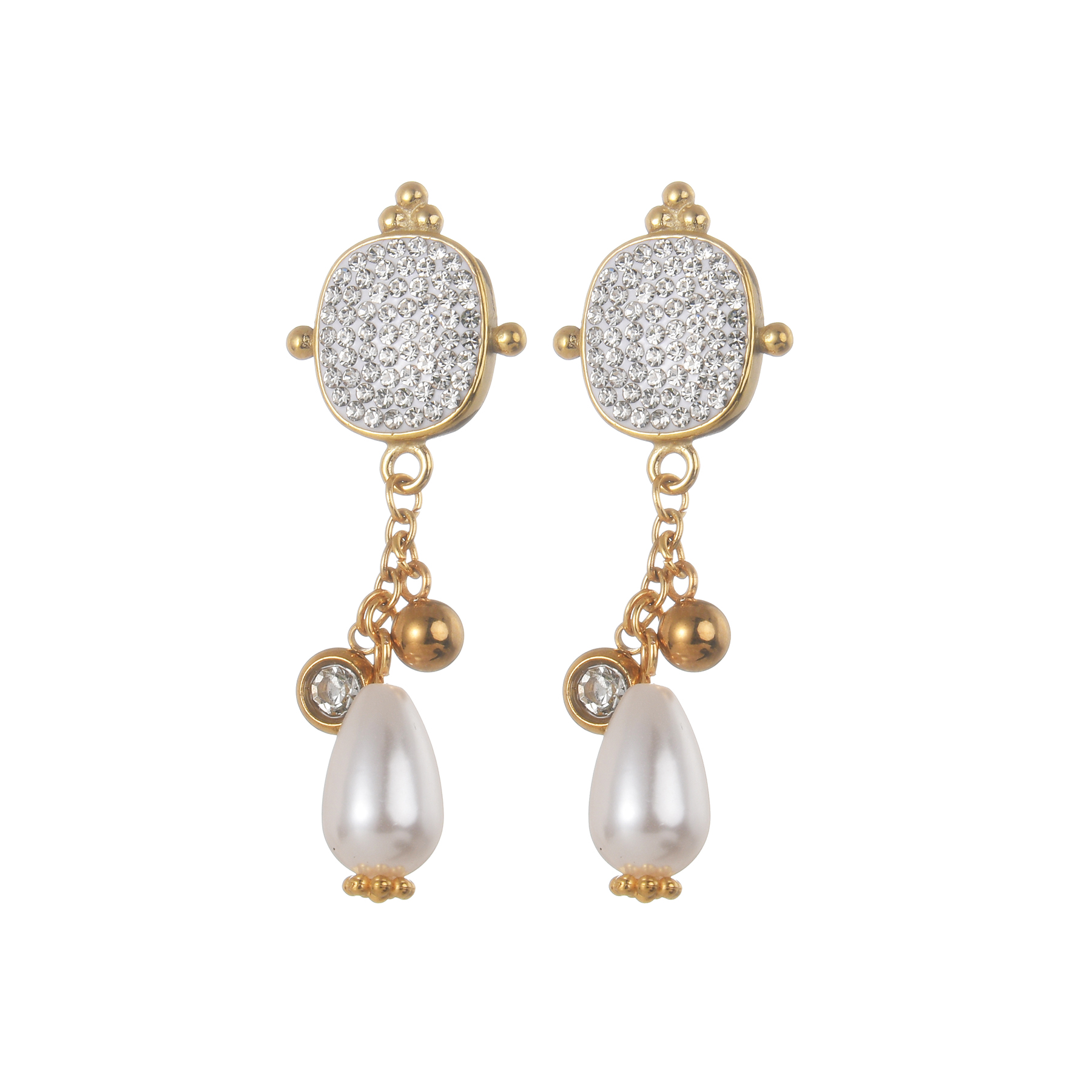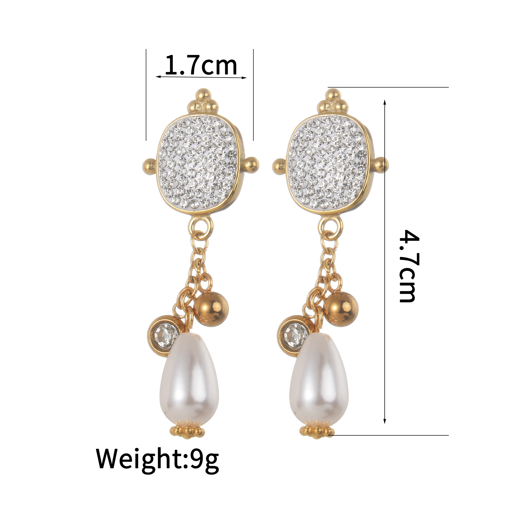 Full Diamond Pearl Pendant Earrings, White Turtle Design