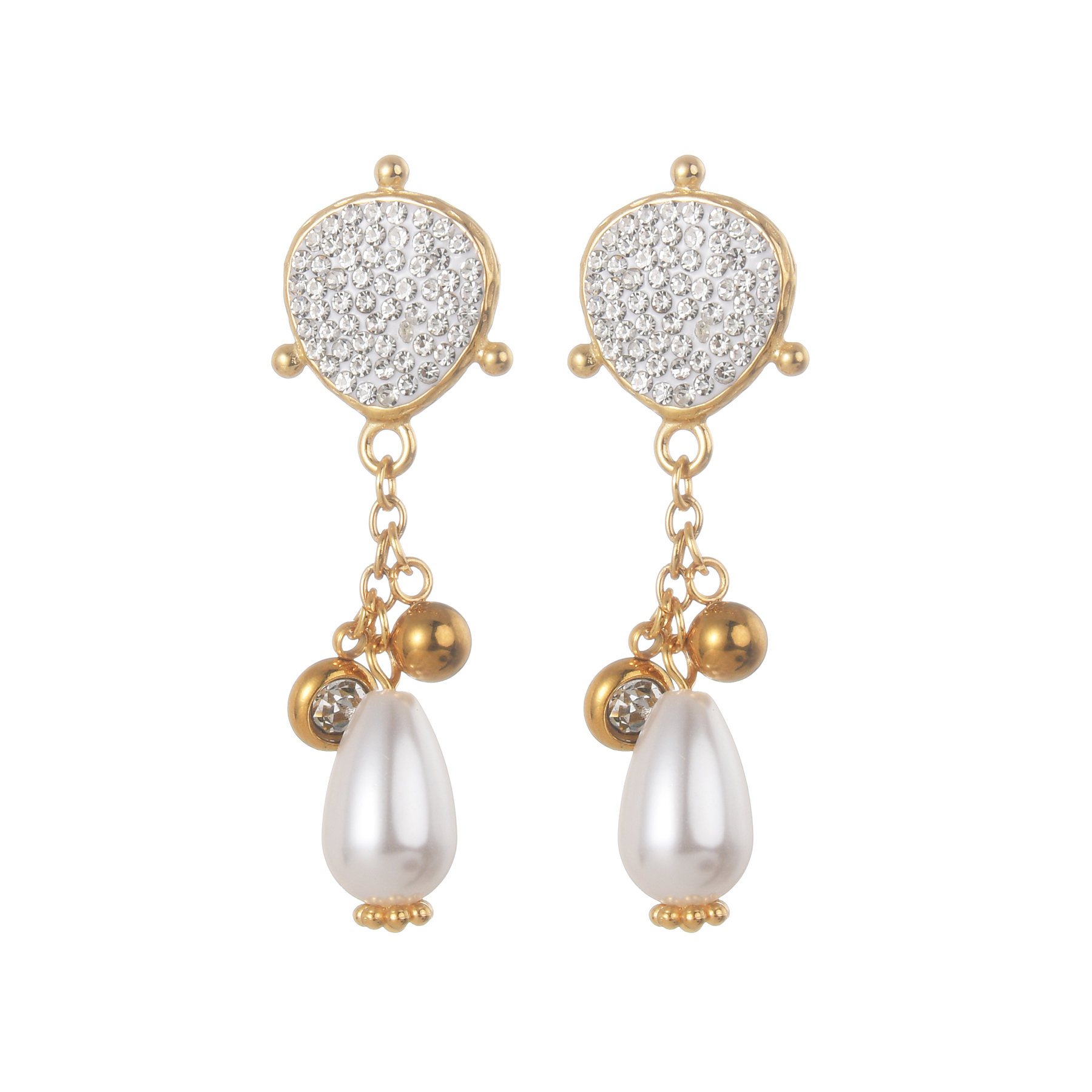 Full Diamond Pearl Pendant Earrings, White Water Drop Shape