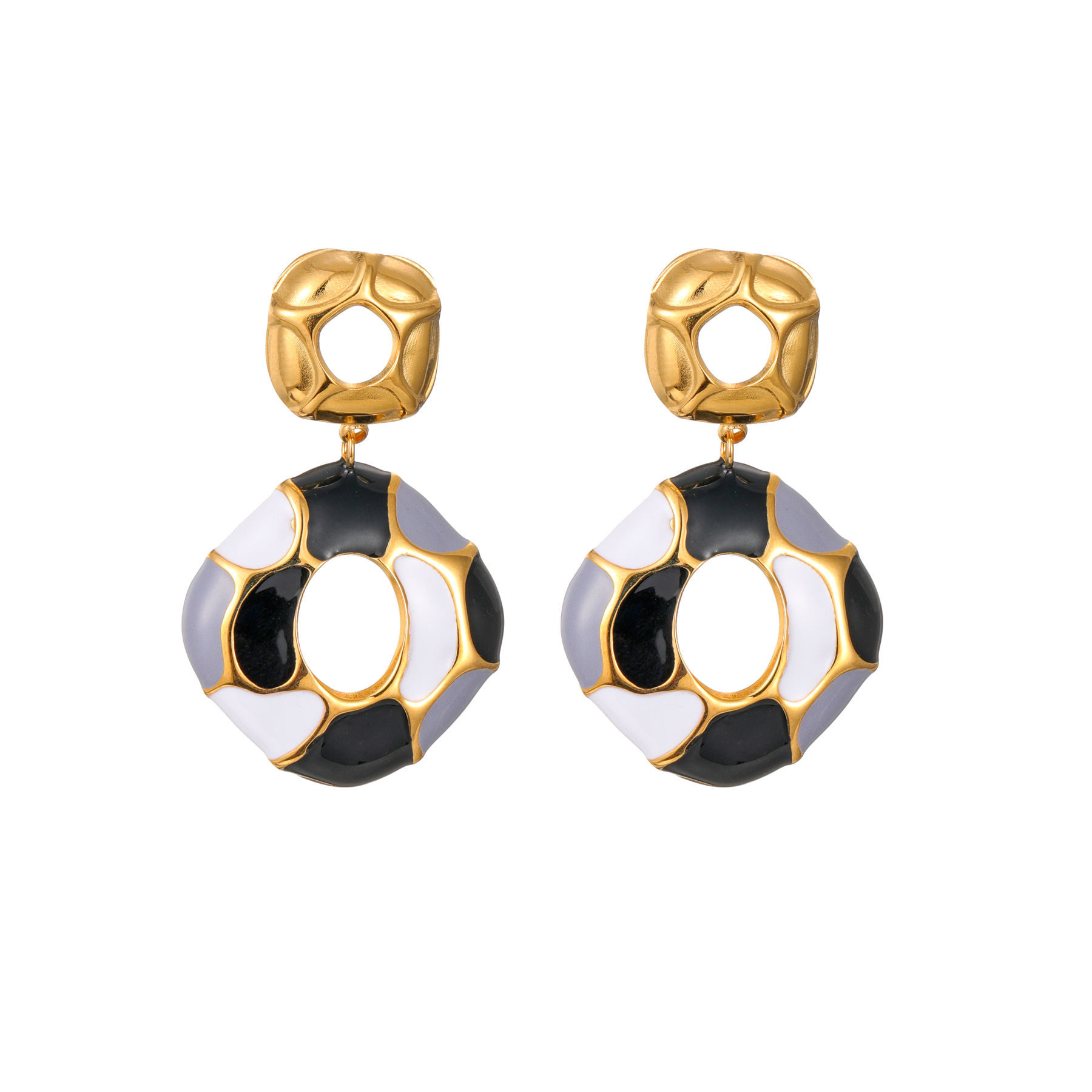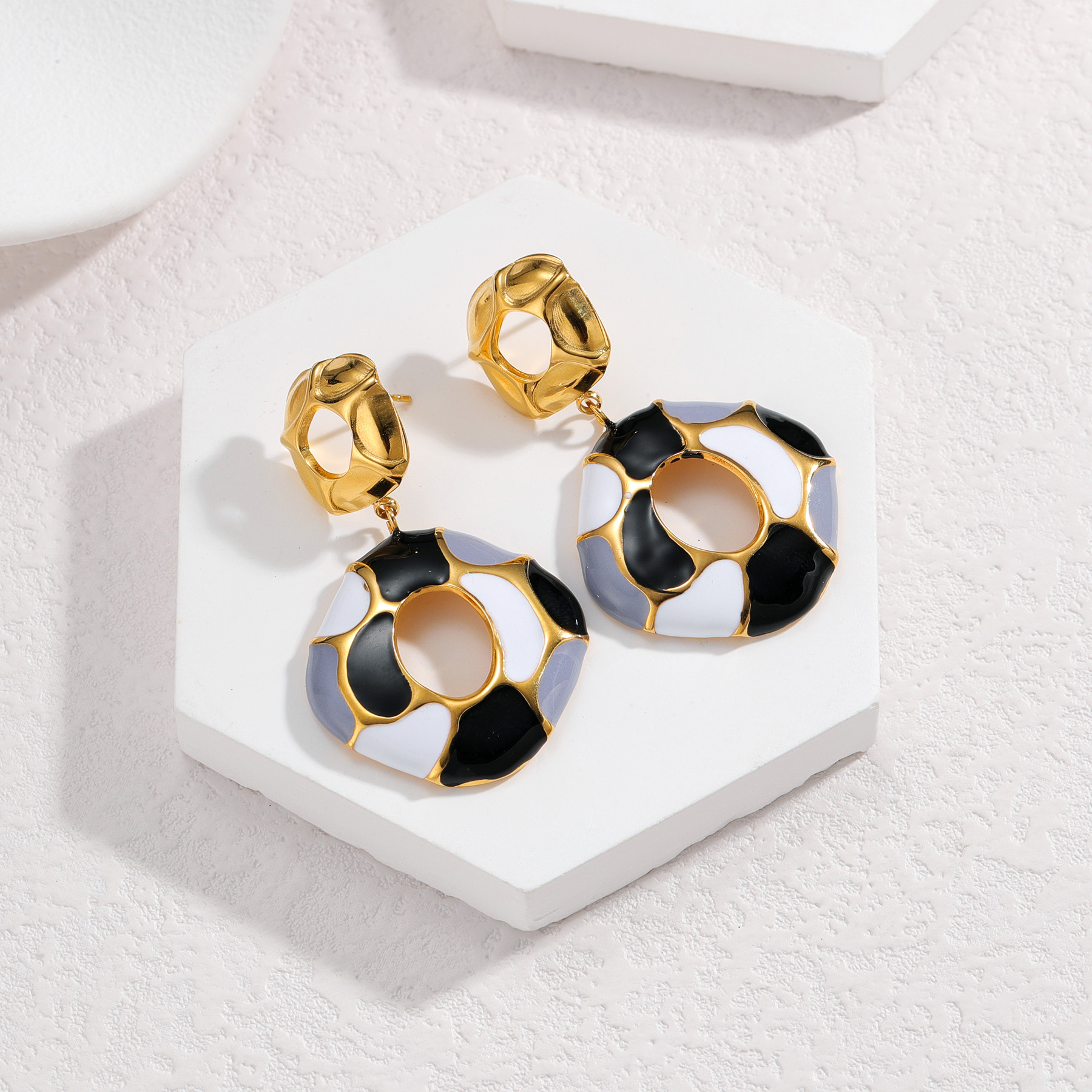 Geometric Enamel Color-Block Earrings, Black quantity