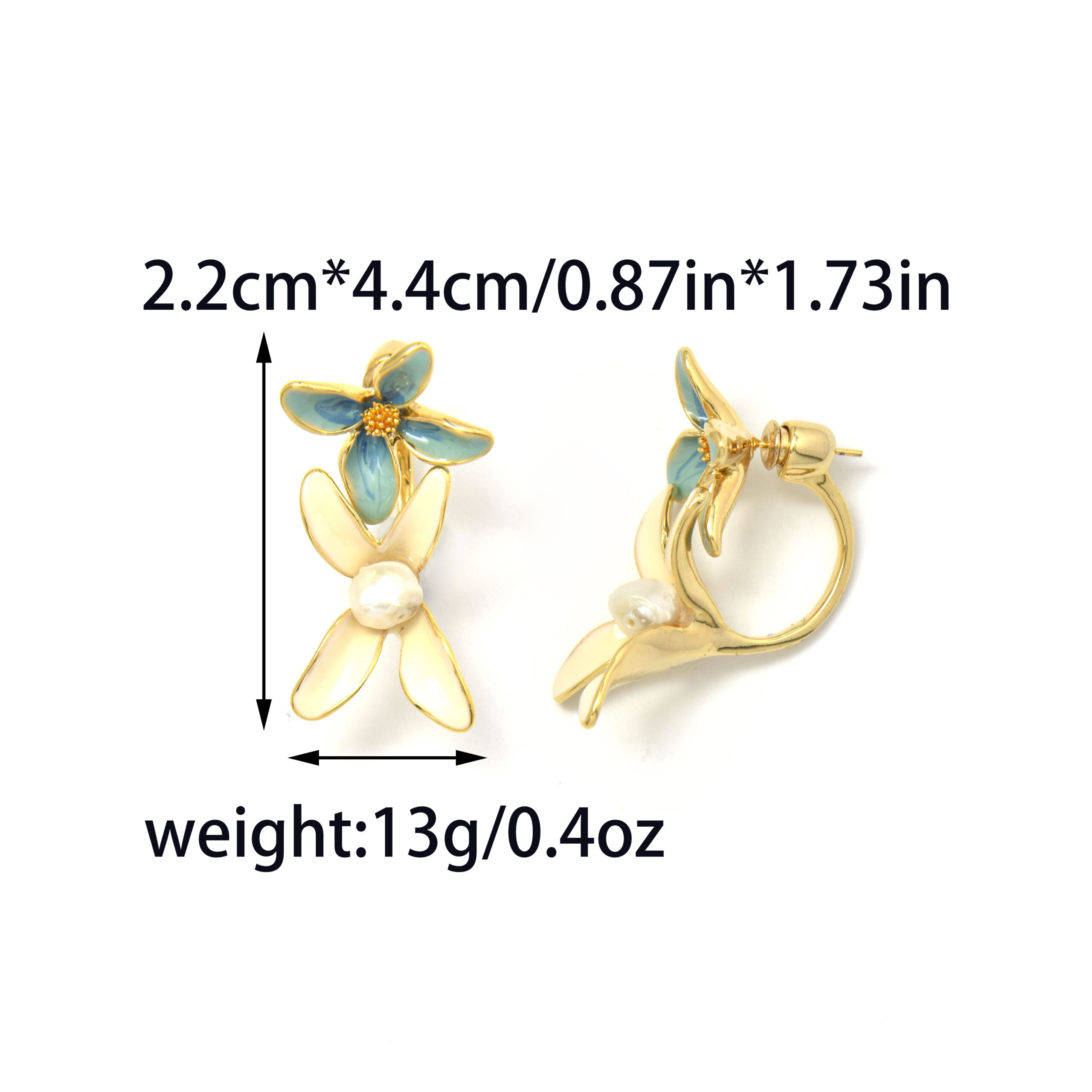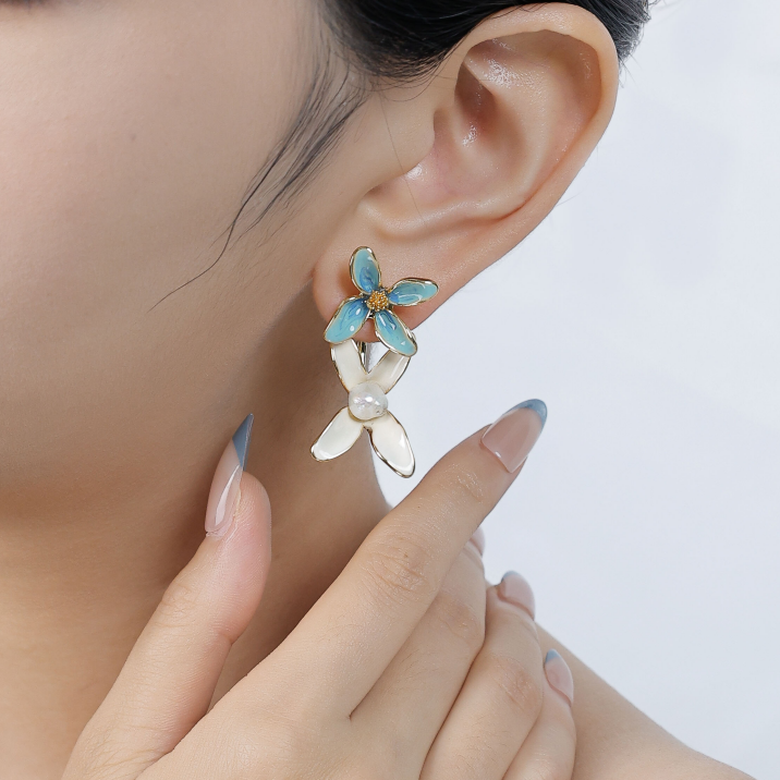 Summer New Shell Irregular Ocean Beach Style Stainless Steel Pearl Earrings