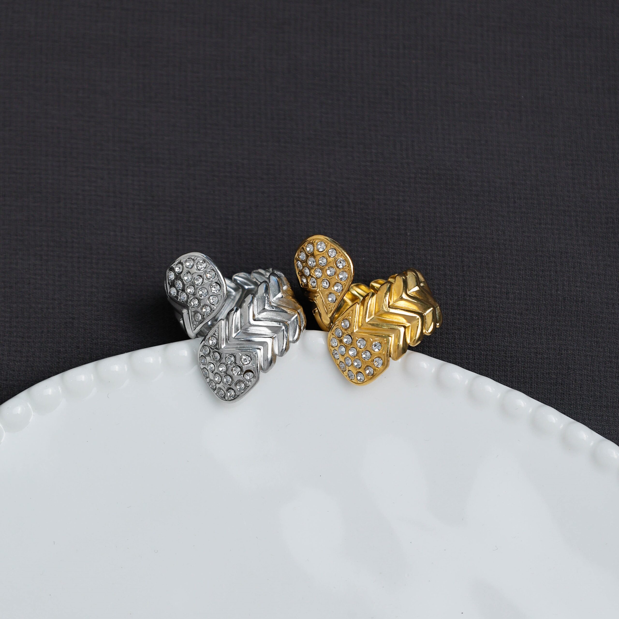 Glamorous Gold – Tone Double – Heart Diamond – Encrusted Ring