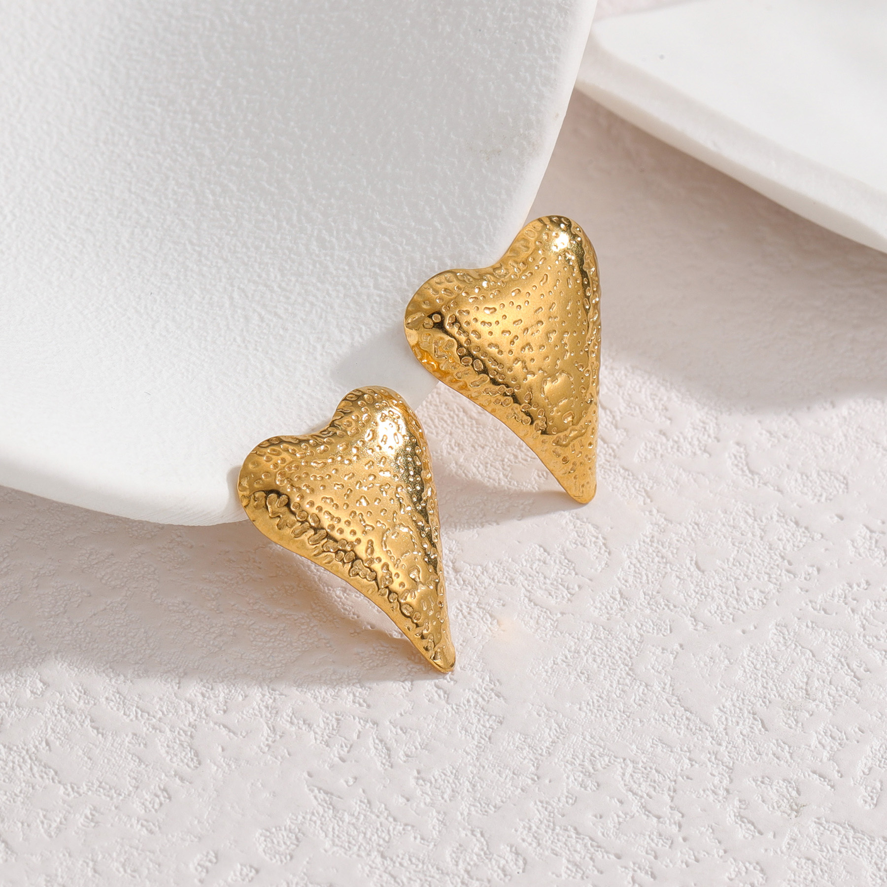 / Hammered Heart Earrings, Gold