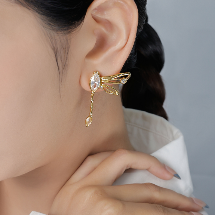 Insect Series: Stunning Dragonfly Earrings, Stainless Steel Diamond-Embedded Earrings