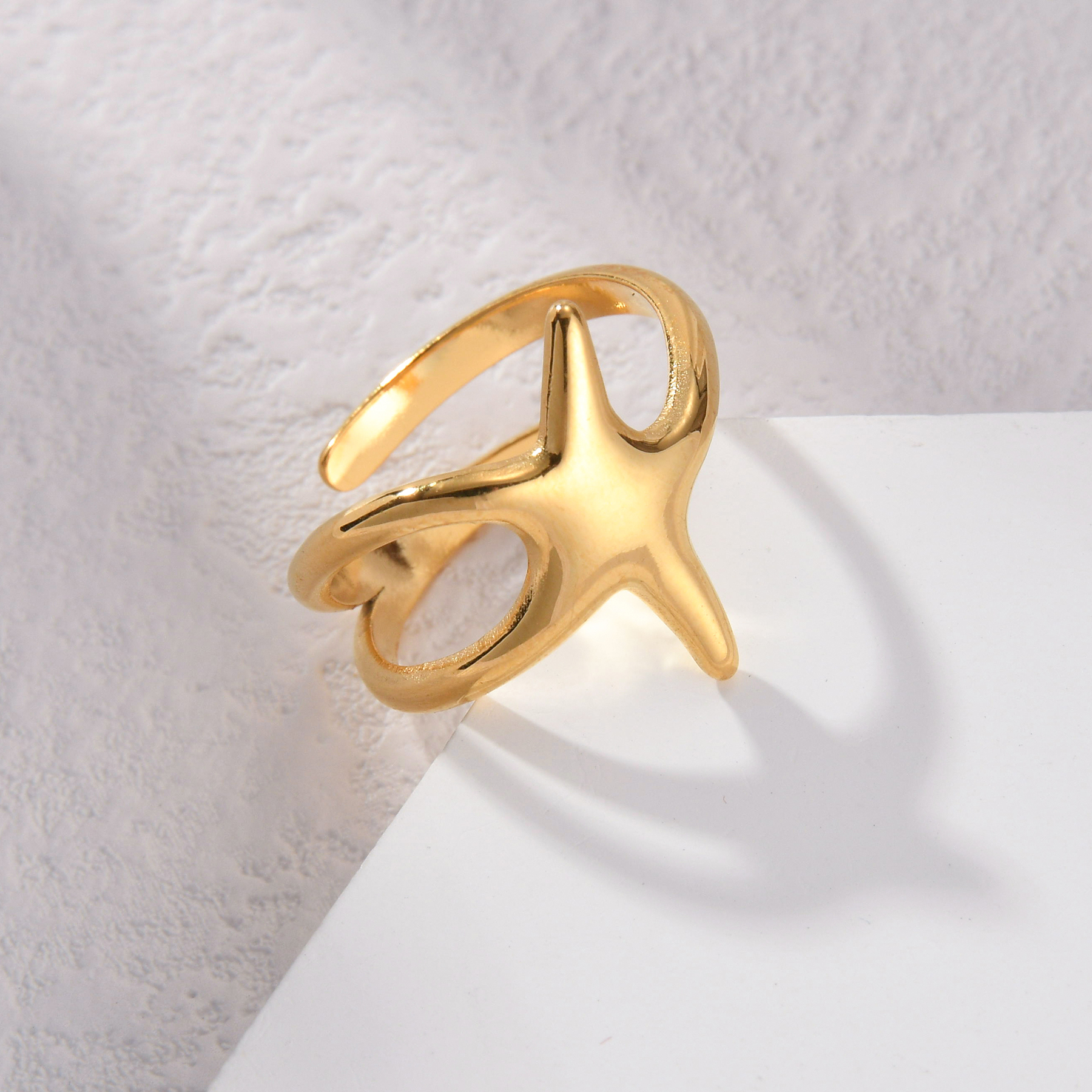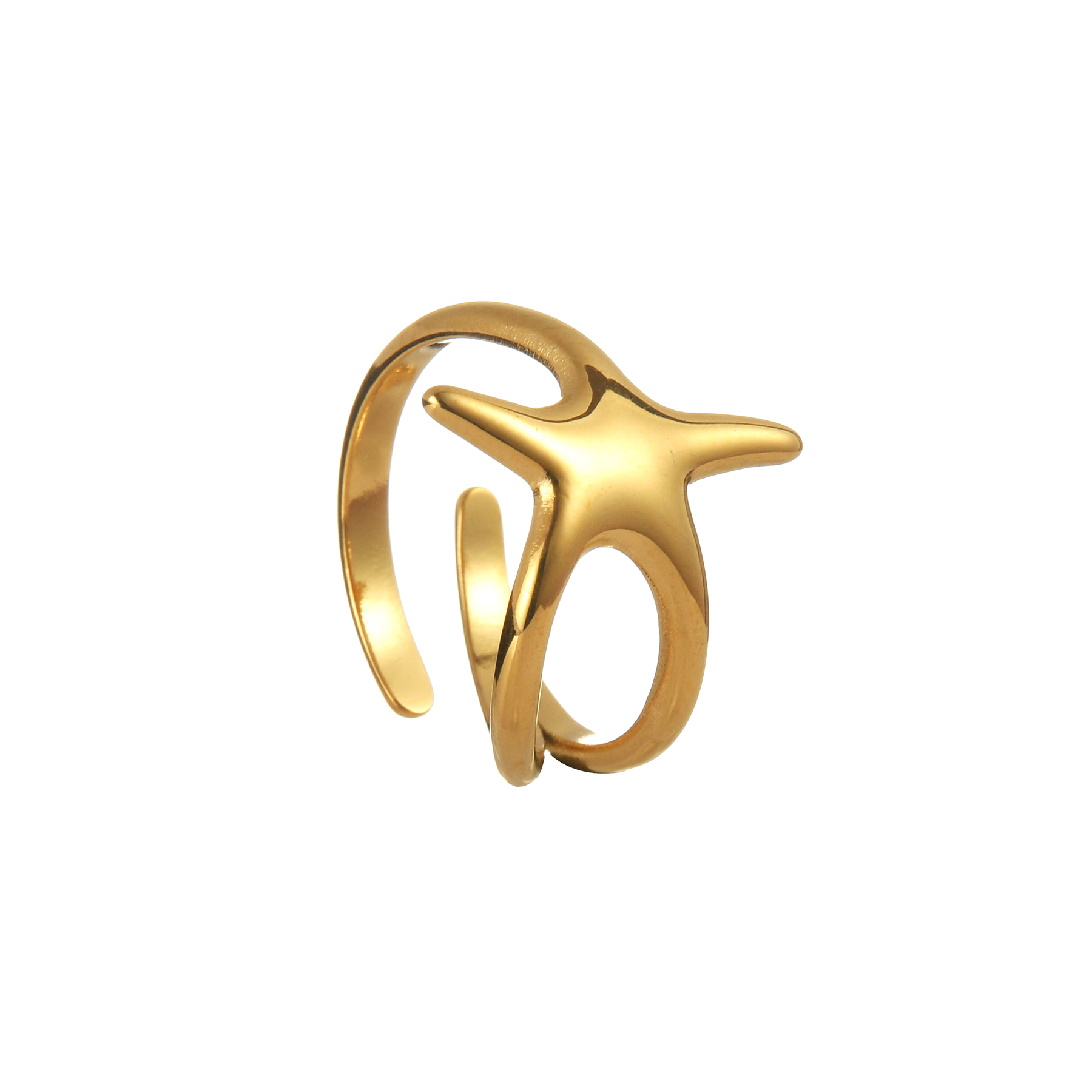 Irregular Shaped Five-Point Star Ring, Gold-colored