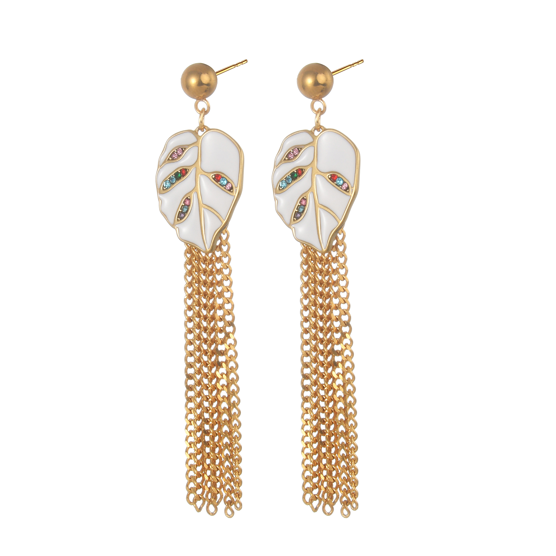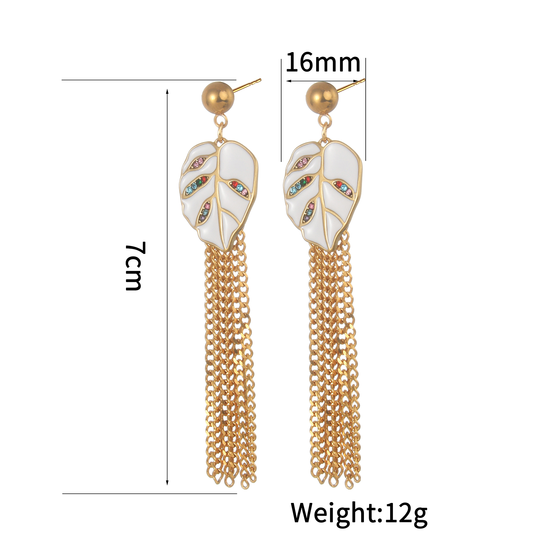 Leaf Chain Tassel Earrings, Enamel Leaf Design quantity