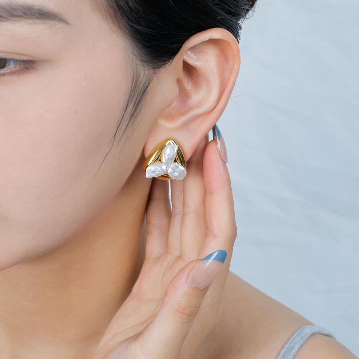 Light luxury, exquisite and beautiful Baroque pearl stainless steel stud earringsLight luxury, exquisite and beautiful Baroque pearl stainless steel stud earrings