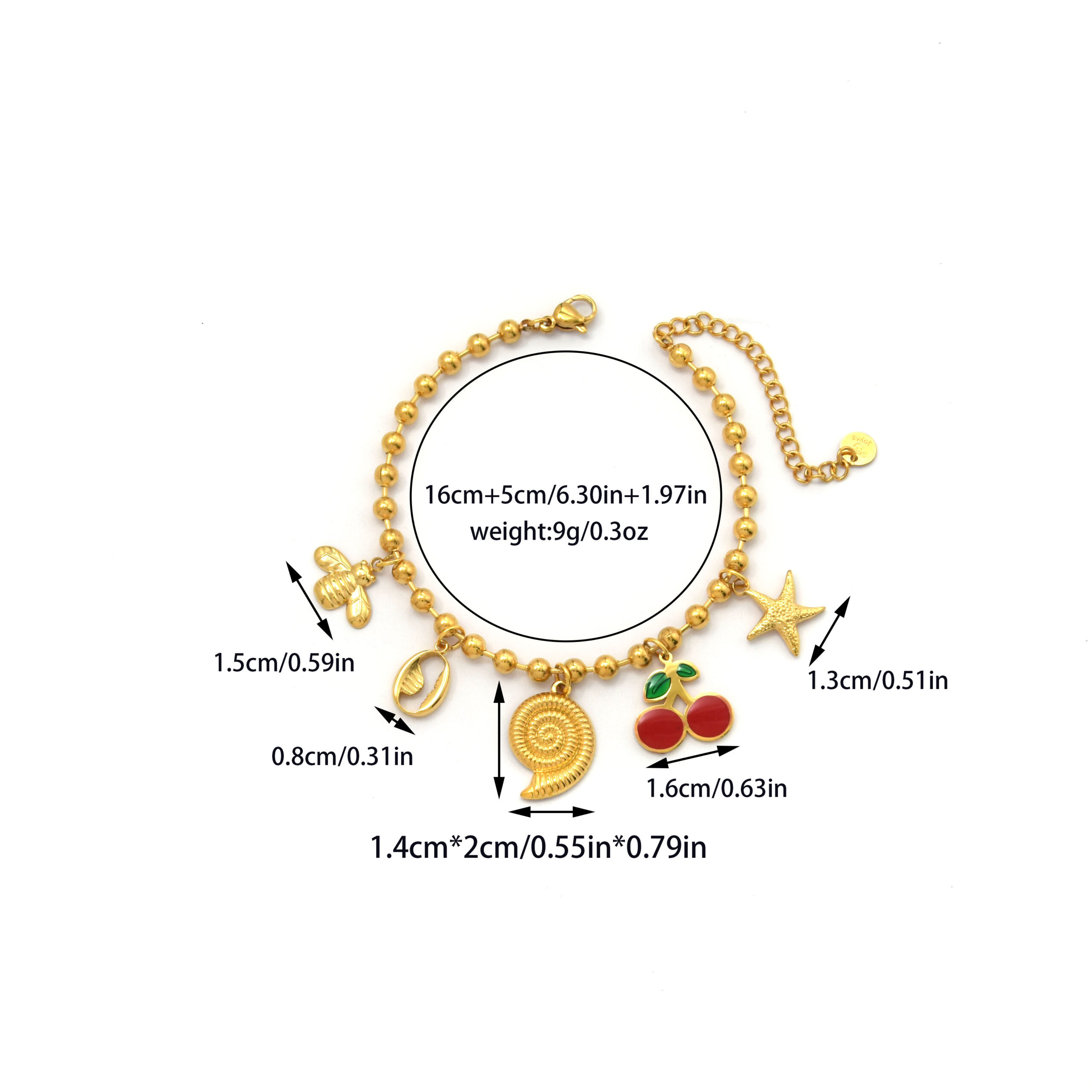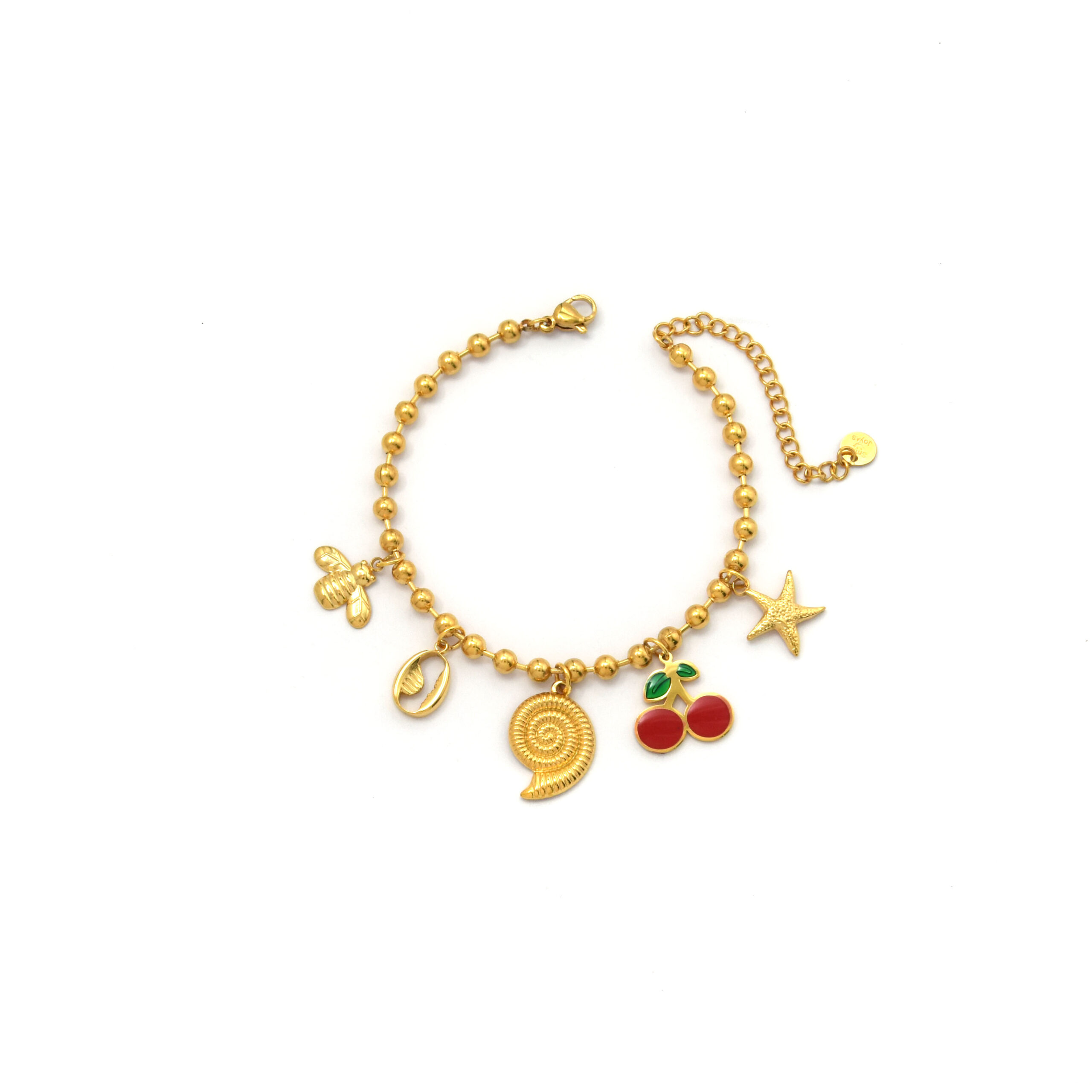 Midsummer Holiday: Bracelet with Cherry, Conch and Bee Pendants Original price was: $4.00.$3.50Current price is: $3.50.