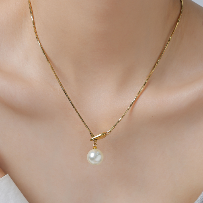 Minimalist and stylish adjustable pearl pendant stainless steel necklace