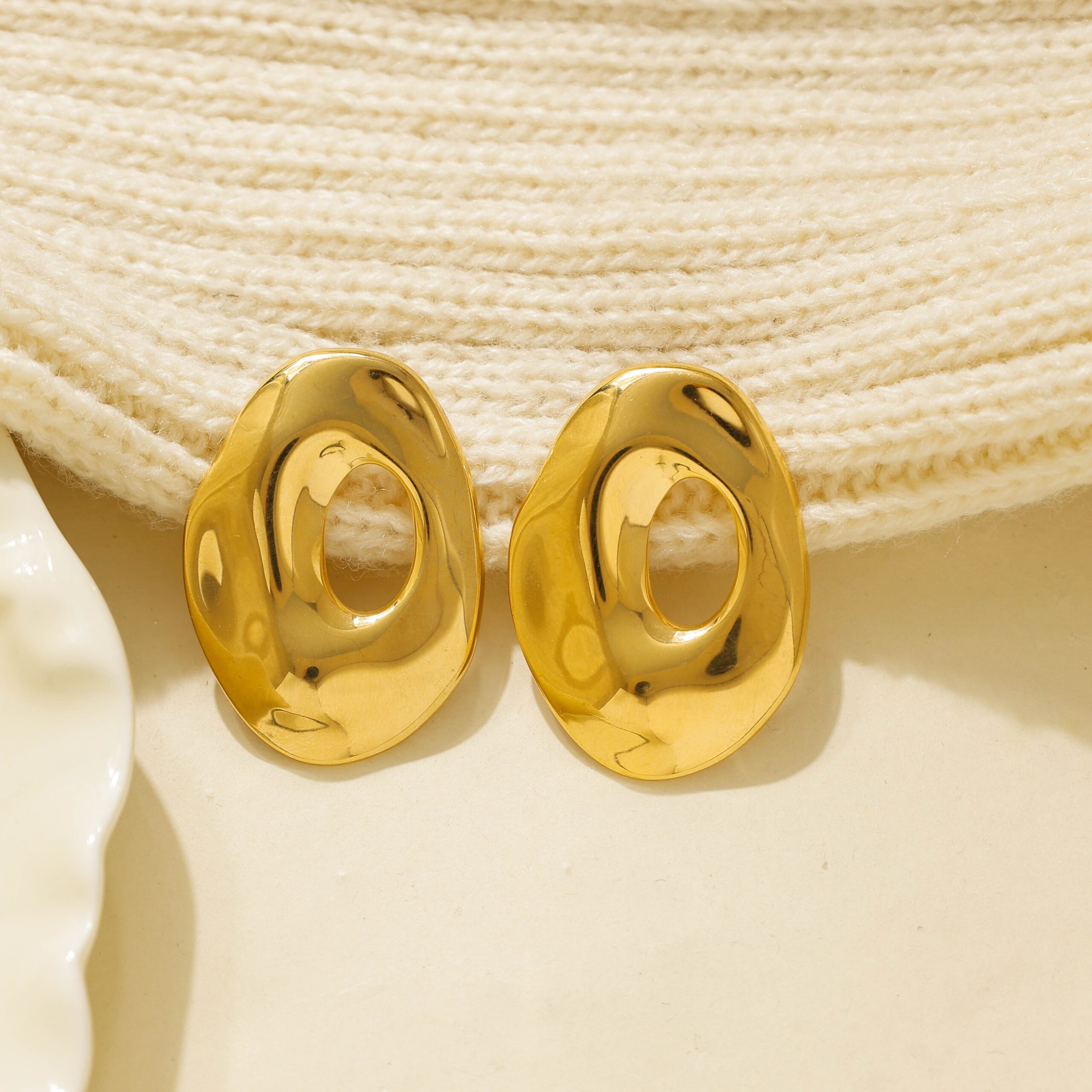Minimalist Gold – Tone Irregular Openwork Earrings