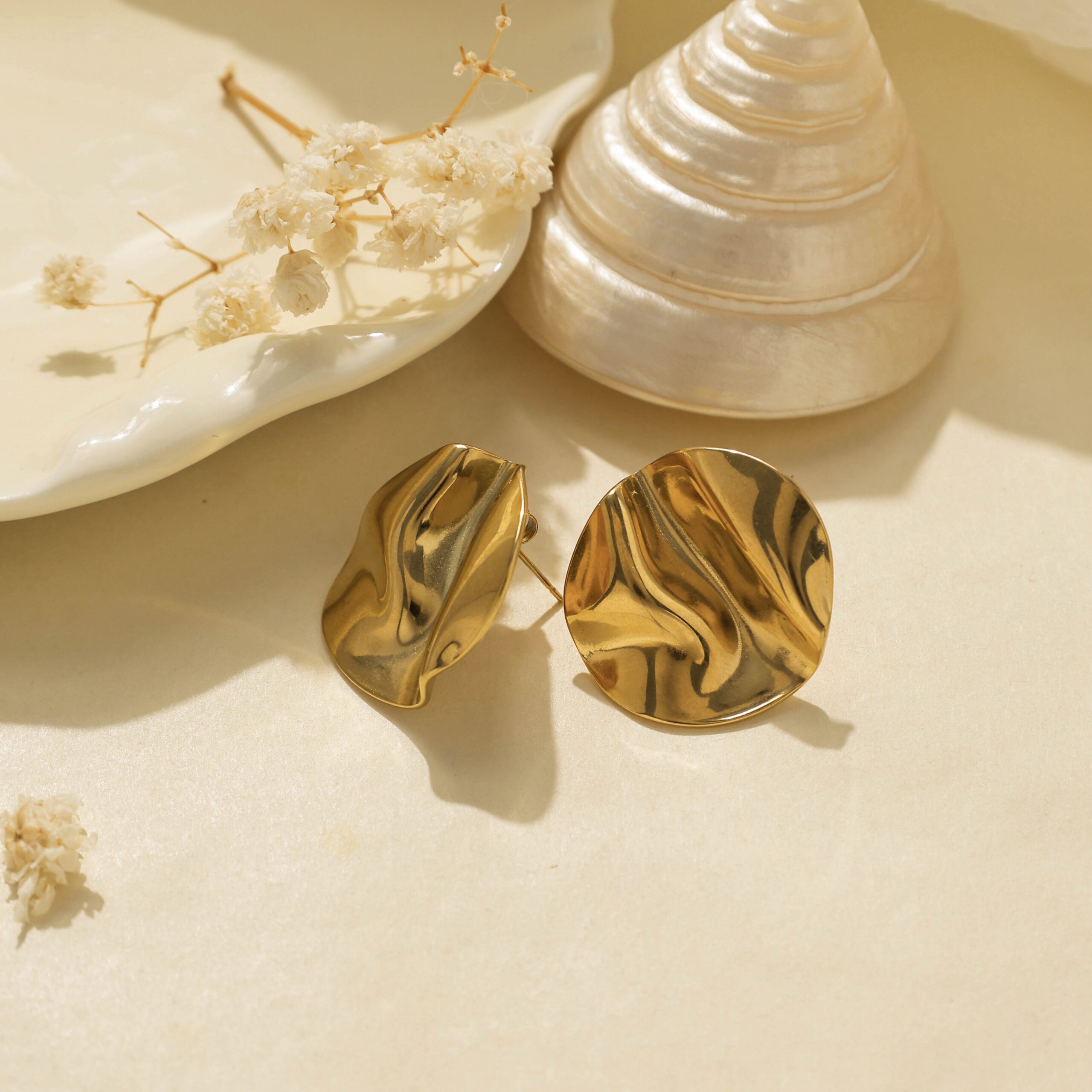 Minimalist Gold – Tone Textured Disc Stud Earrings