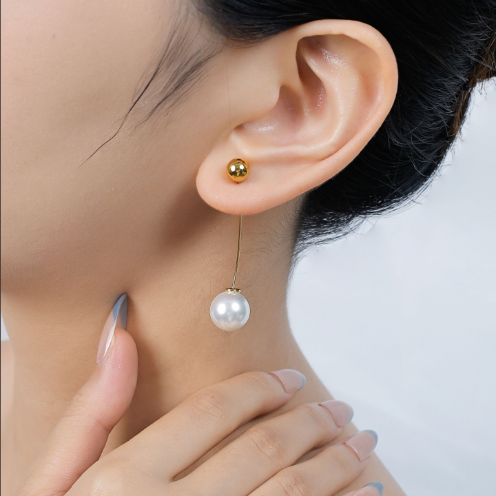 Minimalist Long Line Pearl Stainless Steel Drop Earrings quantity