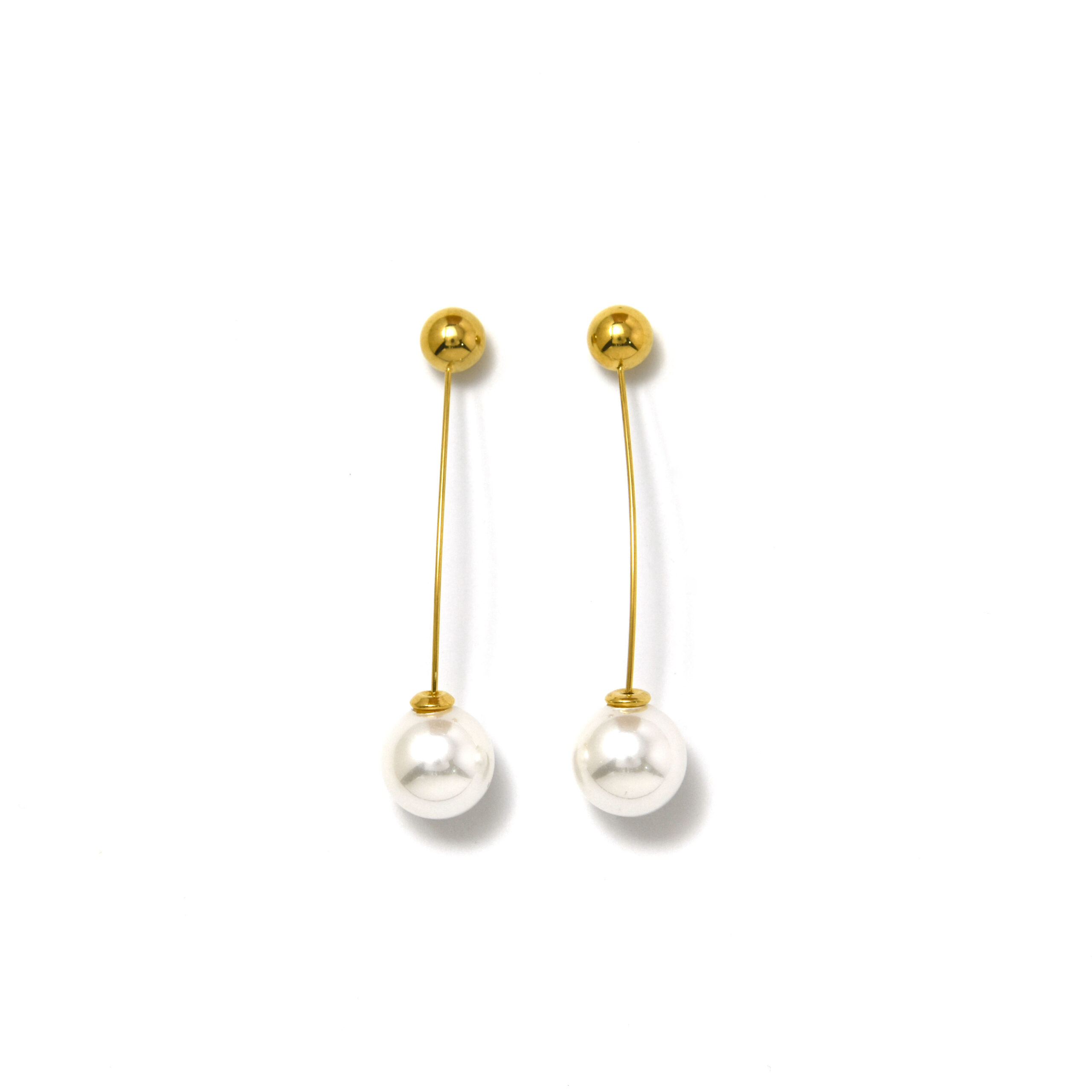 / Minimalist Long Line Pearl Stainless Steel Drop Earrings