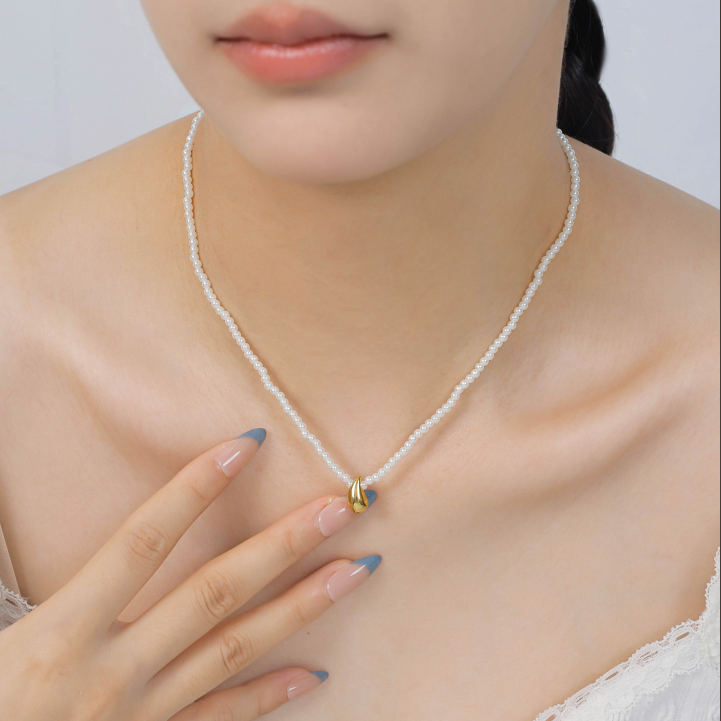 Minimalist stainless steel water drop pendant pearl necklace Original price was: $2.50.$2.20Current price is: $2.20.
